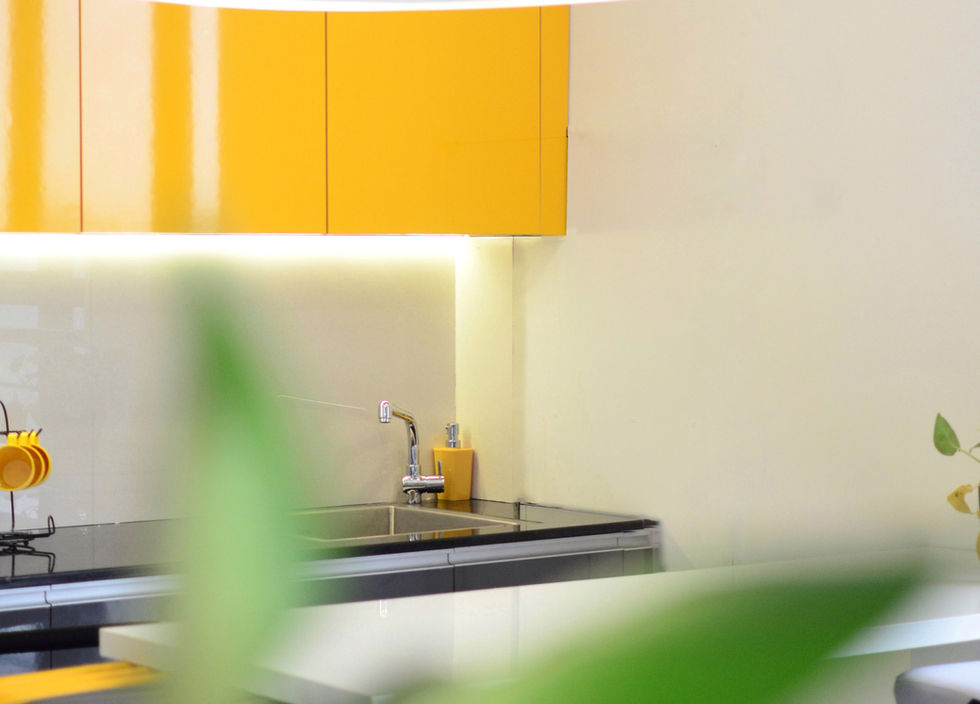 Modern and stylish office space, where a bold color palette meets sleek minimalism. Step into a world of yellow, black, and white tones that exude a sense of sophistication, creativity, and professionalism. The office space is designed with clean lines and minimal metal partitions and furniture, creating an open and spacious environment. The absence of unnecessary clutter and dividers fosters a sense of unity and collaboration, allowing for seamless communication and teamwork among colleagues. The dominant color scheme features a striking combination of yellow, black, and white. Yellow accents energize the space, infusing it with a vibrant and optimistic ambiance. The boldness of black adds a touch of elegance and modernity, while white elements provide a clean and fresh backdrop for the overall design. Ample natural light pours through expansive windows, illuminating the office and enhancing the visual impact of the color scheme. The interplay of light and shadow adds depth and dimension, creating an inspiring atmosphere that stimulates creativity and focus.