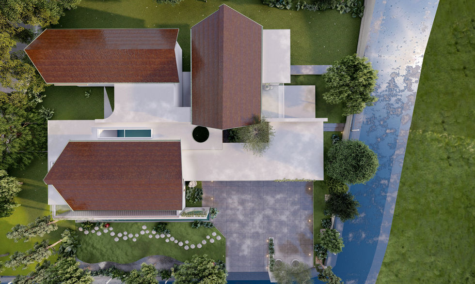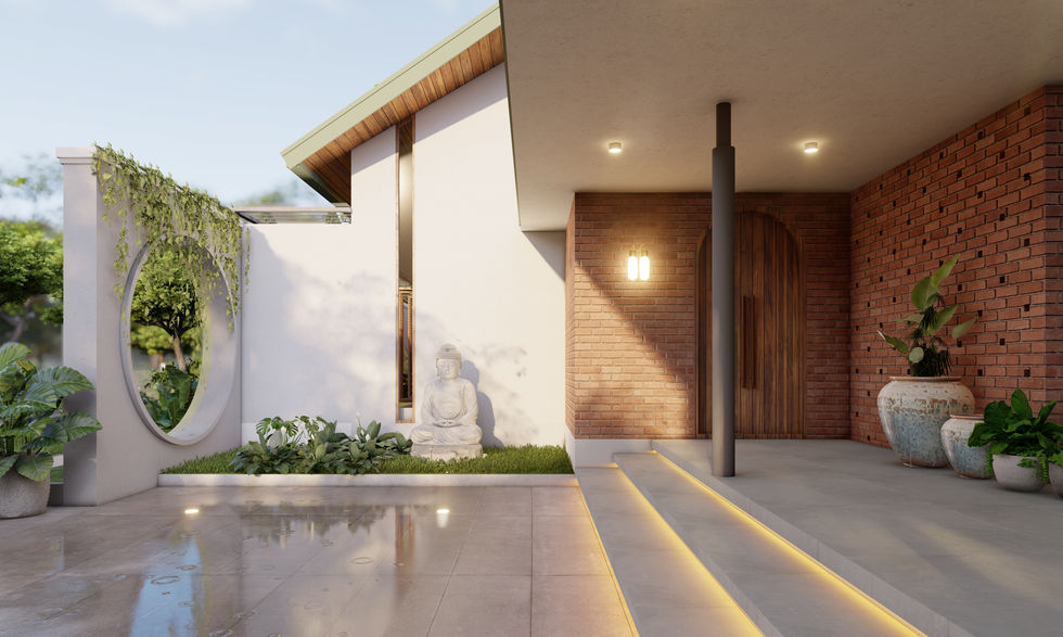 Standing tall on a 40cent site, Dve is 4BHK residence spread on a single floor. The plan incorporates the contours, accentuated with multiple courtyards and water-bodies. Spacious and airy ,the home follows a simple and open design approach.